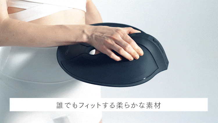 デリケートゾーンでも安心して使えるように、柔らかく優しい素材、骨盤底筋群にフィットする形状を採用。幾度にわたるテストの結果、ついに今まで鍛えにくかった骨盤底筋を「お風呂で手軽に効果的に鍛える」EMSトレーニングマシンを実現しました。
