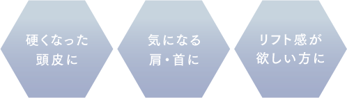 頭頂部からえりあしに向かって約5秒間ずつ押し当てて動かす。
