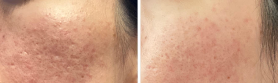 写真の通り、開始前はかなりひどい状態で赤みもひどかったのですが、DPLで2・3日に一回当てるようにしてから、かなり肌の状態が安定して、赤みも良くなって来ました!