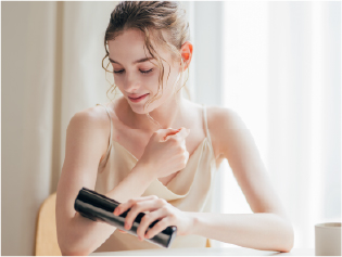 NIRは、900〜1200nmの近赤外線領域の光(IPL)を利用。真皮層へ届くとされるNIR光を集中照射することで、肌の深部を温めます。内側からハリ感のある、引き締まった肌*2へとアプローチし、年齢の出やすい額や目元、口元にも本格エイジング*3光ケアを叶えます。