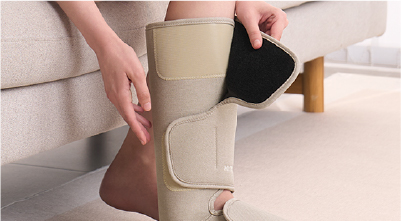 着脱しやすい面ファスナー式でふくらはぎをしっかりホールド。男女兼用で両脚どちらにもご使用できます。