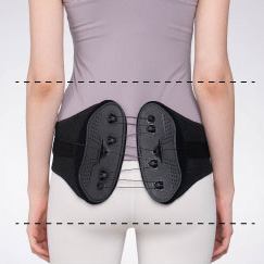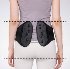 ベルトを左右に引っ張り、腰や骨盤に当てる。