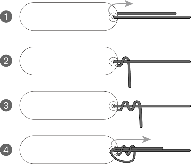 ストリングの端を硬く結び、一番下の穴に入れ、